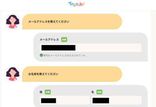 トイサブ!の申し込みは、公式サイトのチャット形式フォームから簡単にできました。