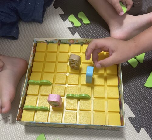 コマを動かしてゴールを目指すボードゲームで、ルールが少し難しく、3歳の子どもには理解が難しかったようです。